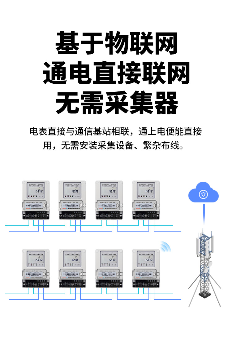 這種抄表方案無需額外的配集中器和采集器,沒有區域限制,不同的城市的電表也能夠實現輕松抄表,只要有手機信號的地方就可以實現抄表,直接通過手機信號將電表里面的數據直接傳輸到后臺中,這種電表成本比較貴,如果是集中安裝的電表,為了成本考慮,我們并不建議用這種抄表方案,圖如下: