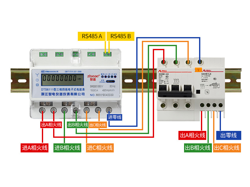 導軌式三相四線制是指有A、B、C、N,其中,N線是中線,也叫零線。N線是為了從380V相間電壓中獲得220V線間電壓而設的,有的場合也可以用來進行零序電流檢測,以便進行三相供電平衡的監控。