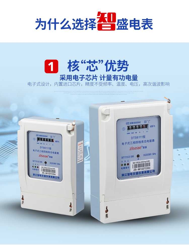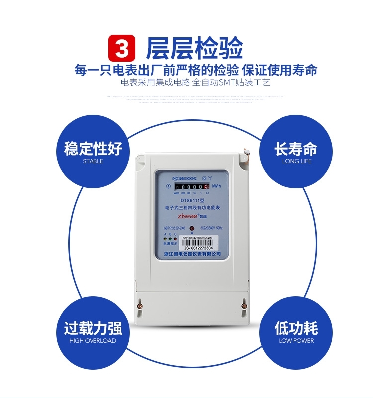 DTS6111型三相四線和DSS6111型三相三線兩種型號(hào)三相電子式有功電能表,內(nèi)部運(yùn)用了集成電路在經(jīng)過SMT工藝生產(chǎn)制作而成。結(jié)構(gòu)設(shè)計(jì)合理,制作工藝先進(jìn)。跟傳統(tǒng)的電能計(jì)量表對(duì)比,三相電子式有功電能表的測(cè)量準(zhǔn)確度高、性能可靠、節(jié)能。