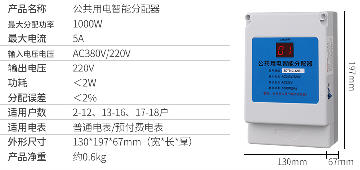 一、智盛牌公用電智能均分器”是將公共樓道用電所消耗的電能(如樓道燈,對講防盜門等),自動分配到各受益用戶的電表中。每天輪流接通一戶電表,開機通電時第一戶電表隨機產生,達到公平分攤電費的目的,本款特點:外置保險絲更換方便,可實時顯示均分到哪戶。